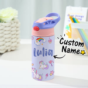 Custom Rainbow Unicorn Stainless Steel Water Cup – Personalized Name Cup for Kids