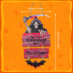 Personalized Death Scythe Halloween Door Sign – Custom Wooden Ornament