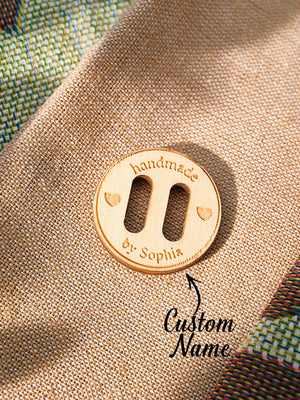 Add a warm, personal touch to your handcrafted projects with this set of 15 Personalized Wooden Buttons. Engraved with “Handmade with Love” and your custom name or message, these buttons are a beautiful way to label your work—perfect for knitting, crocheting, sewing, or crafting projects.