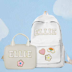 Personalized Name Backpack & Lunch Bag Set – Custom Chenille Patch School Combo