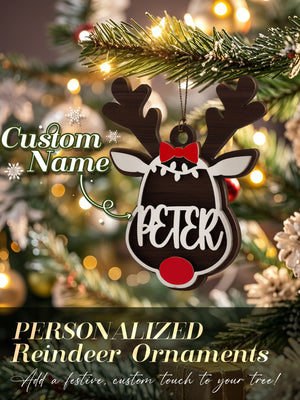 Personalized Reindeer Ornament – Custom Name Christmas Tree Decoration