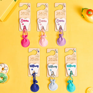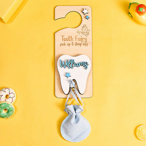 Personalized Tooth Fairy Door Hanger – Custom Wooden Keepsake with Pouch