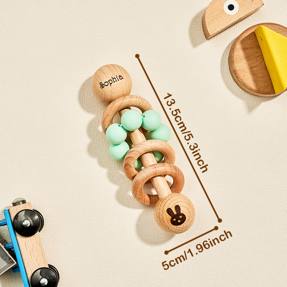 Personalized Wooden Baby Rattle with Engraved Name – Custom Baby Shower & Birthday Gift